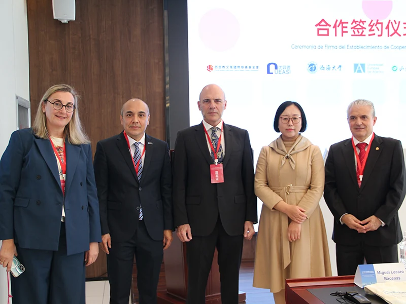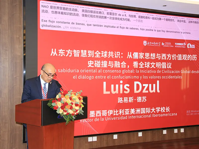 同时,他强调教育在加强合作中的战略作用。在此框架下,他特别指出,中国与西、葡语国家之间签署的《教育合作促进联盟》——由 FUNIBER 与中国及伊比利亚美洲的多家学术机构共同签署——是巩固均衡、可持续合作模式的重要一步。