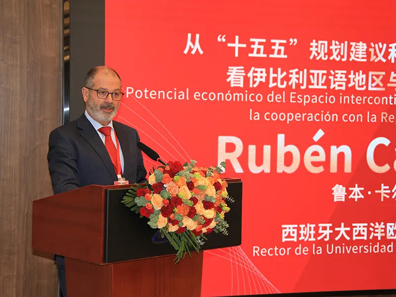 大西洋欧洲大学校长鲁本·卡尔德隆(Rubén Calderón)在发言中强调,泛伊比利亚或伊比利亚语系空间作为一个多国共同体,其经济、文化与地缘政治的组织能力正不断提升。他从整体视角阐述了这一共同体的重要性,包括其人口规模、跨洲际分布以及作为语言文化共同体的凝聚力。在此框架下,他分析了制约其全面发展的主要挑战,并指出,与中国建立结构化合作,对双方而言都具有战略意义,尤其是在全球格局加速变化的背景下。